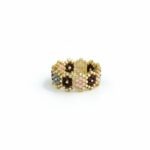 Anillo tejido a mano con mostacillas Miyuki de alta calidad, diseño floral en tonos combinados y detalles dorados.