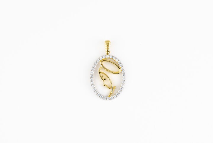 Oro18k – 750 ley tono amarillo con finos cristales en tono blanco o transparente.