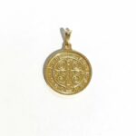 Dije de San Benito bañado en oro 18k, con acabado pulido y detalles definidos.