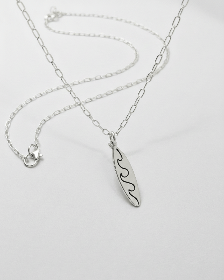 Dije tabla de surf plata950, modelo inspirado en el balneario de Máncora