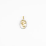 Oro18k – 750 ley tono amarillo con finos cristales en tono blanco o transparente.